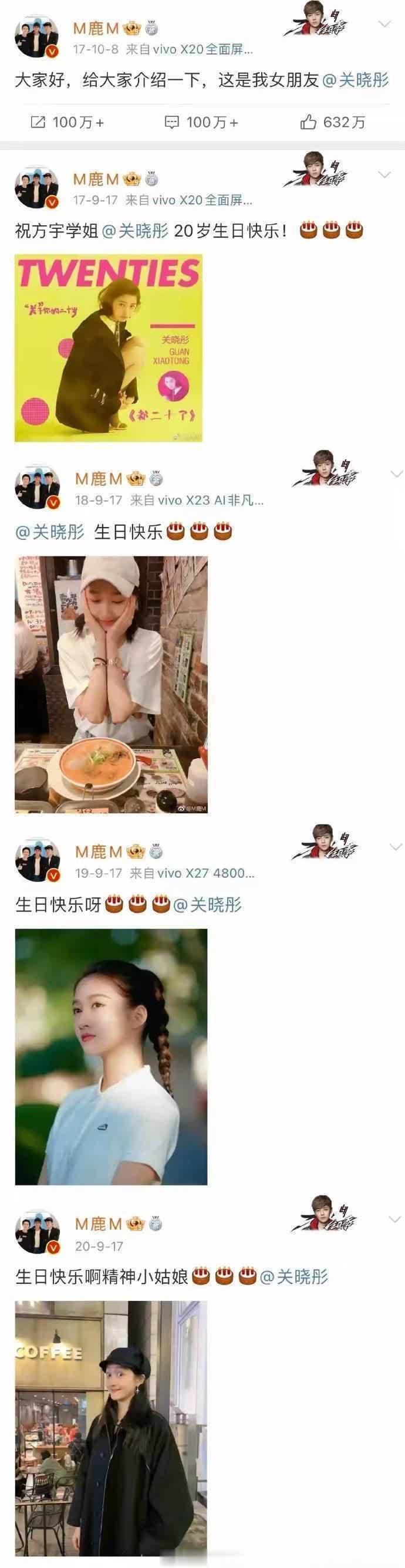网友们立刻大显神通,有人翻出往年卡点发博的截图做对比。有人分析两人商业版图的切割时间线,还有人搬出关晓彤父亲点赞过的博文当佐证。从2017年鹿晗官宣恋情引发微博瘫痪,到此后每一年的卡点庆生、频繁同框,再到2024年底共同公司注销、公开互动归零,这对曾经的顶流情侣的一举一动,总能引发高度关注。